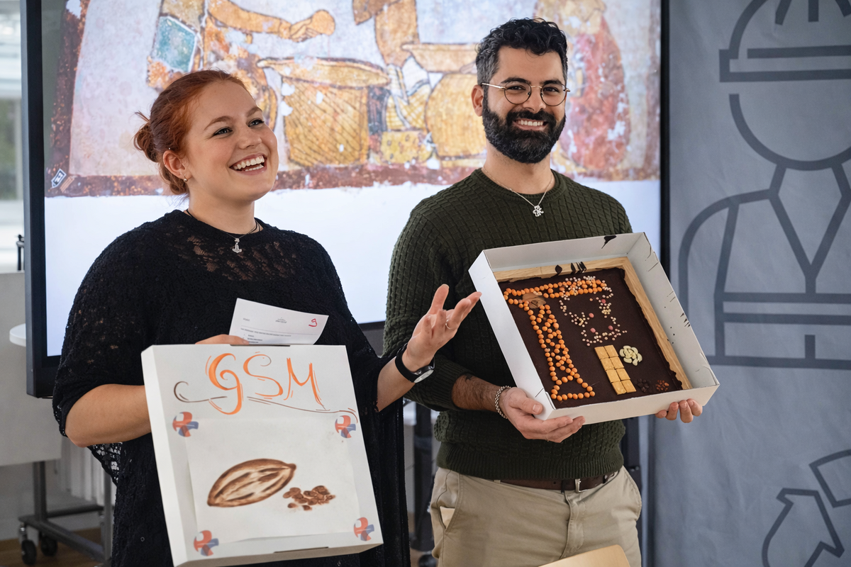 Hier die Challenge: Such dir einen Team, dann einen Namen für euer Schokoladen-Startup und einen Claim, gestaltet ein Logo und entwerft die Verpackung in der Größe einer Pizza. Beim Gestalten der Jumbo-Schokolade und bei vielen der anderen Aufgaben arbeitet ihre gegen die Uhr. Es könnte sinnvoll sein, innerhalb der Gruppe Aufgaben zu verteilen, um die Effizienz zu erhöhen. Nutze dein ganze Kreativität und die vielen Möglichkeiten der KI. Aber hast du auch gut aufgepasst? Es gibt einen Quiz und andere überraschende Elemente, die für die Gesamtwertung zählen. Wir garantieren dir Adrenalin bis zum letzten Augenblick - denn es kann nur einen Gewinner geben!