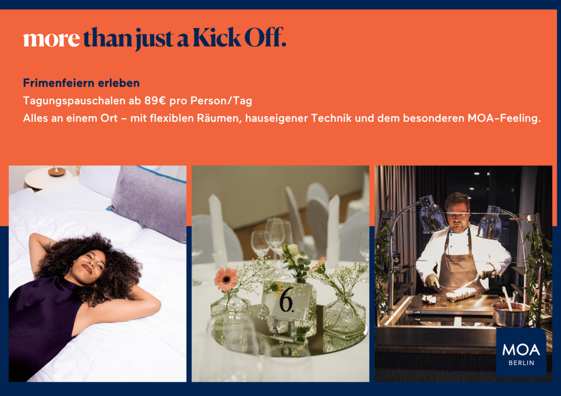 Mit zentraler Lage, 336 Zimmern und großzügigen Eventflächen ist das MOA Berlin der perfekte Ort für Kick-offs, die verbinden.