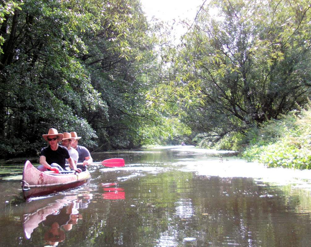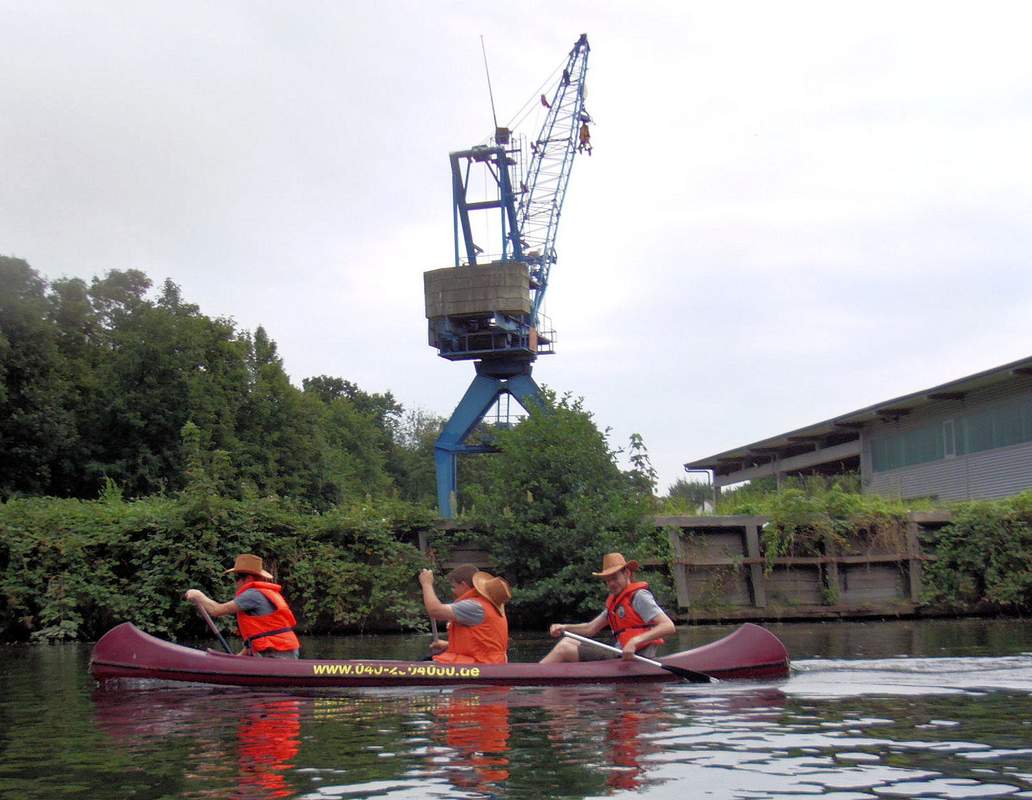 Eine Kanutour als Teamevent mal nicht auf der Alster, sondern auf der Bille. Start ist in der Nähe der Boberger Dünen. Ein ländliches Gebiet mit Bauernhöfen, Kühen auf den Weiden usw. Durch diese Idylle geht es etwa 3,5 Km bis zur Unterquerung der Autobahn A1 (wo 1 Stauwehr umtragen werden muß). Von da an ändert sich das Bild stetig, denn bald geht es mitten durch das zum Hafen gehörende Gewerbegebiet Billbrook. Nach weiteren ca. 6 Km wird die Schleuse Tiefstack erreicht. Jenseits der Schleuse befinden wir uns im tideabhängigen Hafengebiet. Die Schleusung ist nur bei bestimmten Wasserständen möglich, und das Paddeln elbabwärts jenseits der Schleuse nur bei ablaufendem Wasser. Daher muß diese Kanutour auf die möglichen Schleusenzeiten abgestimmt werden. Auch um eine mögliche Wartezeit zu überbrücken, findet kurz vor der Schleuse ein Picknick mit kaltem Bufftet + Getränken statt. Nach dem Picknick wird dann die Schleuse passiert. Durch die Billwerder Bucht und das dortige Sperrwerk geht es weiter zum Elbpark Entenweder, wo die Kanutour endet.