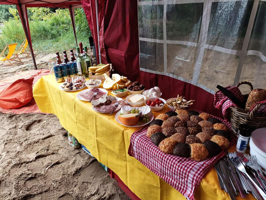 Die Rückmeldung aus dem Team hat ergeben, dass die Speisen doch sehr knapp bemessen und qualitativ durchaus hätten besser sein können. Ein Waffeleisen bei 45 Personen, die Süßigkeiten überwiegend hart/alt und beim Grill wurde nicht offensichtlich, dass es auch Hähnchen und Kottelet gab. Das Ambiente und der gesamte Aufbau wurden als liebevoll und gelungen bezeichnet. Lediglich der Platz in der Mitte war doch etwas eng bemessen.