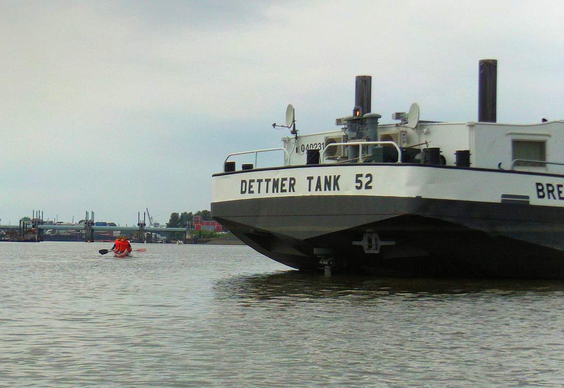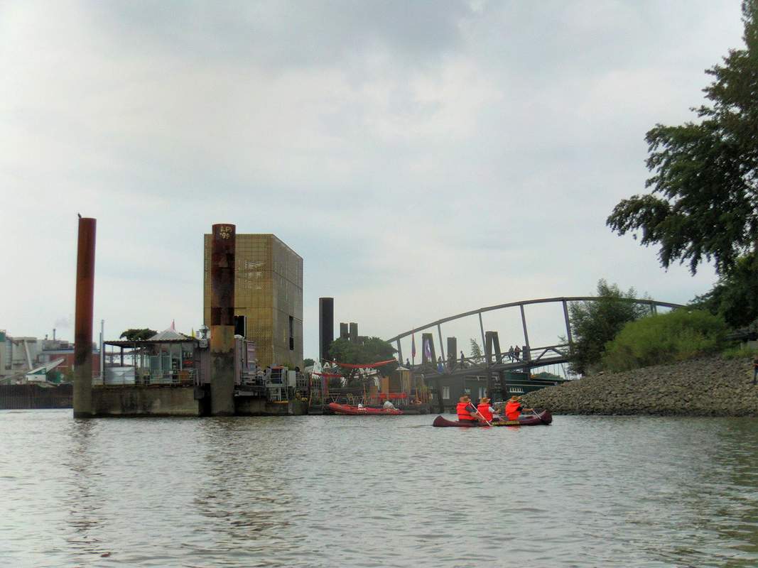 Die letzten ca. 2 Km dieser Kanutour verlaufen durch das Gebiet des Hamburger Hafens wo eine gewisse Geübtheit im Umgang mit dem Kanu erforderlich ist. Unsichere Teilnehmer müssen daher die Tour beim Picknick beenden.