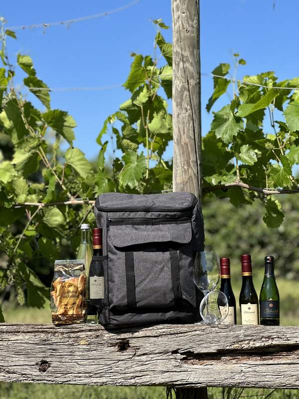 - Weinwanderung mit RucksackSie bekommen dann einen Rucksack mit: – 2 x Weißwein (0,25l) – 1 x Rotwein (0,25l) – 1 x Sekt (0,2l) – 1 x Mineralwasser (0,75l) – Fluffa Käsegebäck ausreichend für 2 – 5 Personen (50,00 € Pfand für Weinrucksack und Gläser)