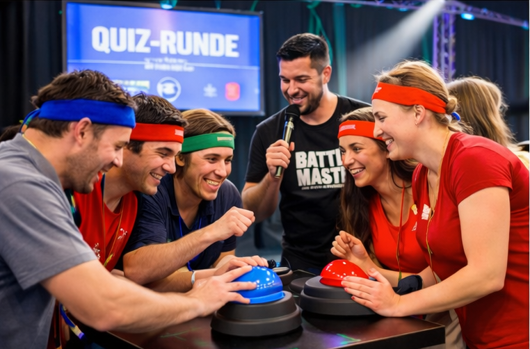Vom ersten Moment an werdet ihr Teil einer packenden Game-Show. Unsere erfahrenen Battle Master führen euch durch das Programm, behalten die Punkte im Blick und sorgen dafür, dass ihr euch ganz auf das gemeinsame Erlebnis konzentrieren könnt – egal ob ihr knobelt, lacht oder beim Finale noch einmal alles gebt.