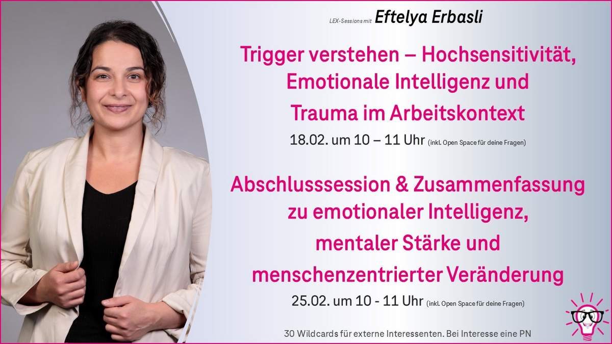 Bei LEX, der größten informellen Lern- und Austauschcommunity der Deutschen Telekom, hat sie zahlreiche wertvolle Sessions mit mehreren Hundert Teilnehmenden gestaltet – stets mit Empathie, Klarheit und großem Wirkungskreis.
