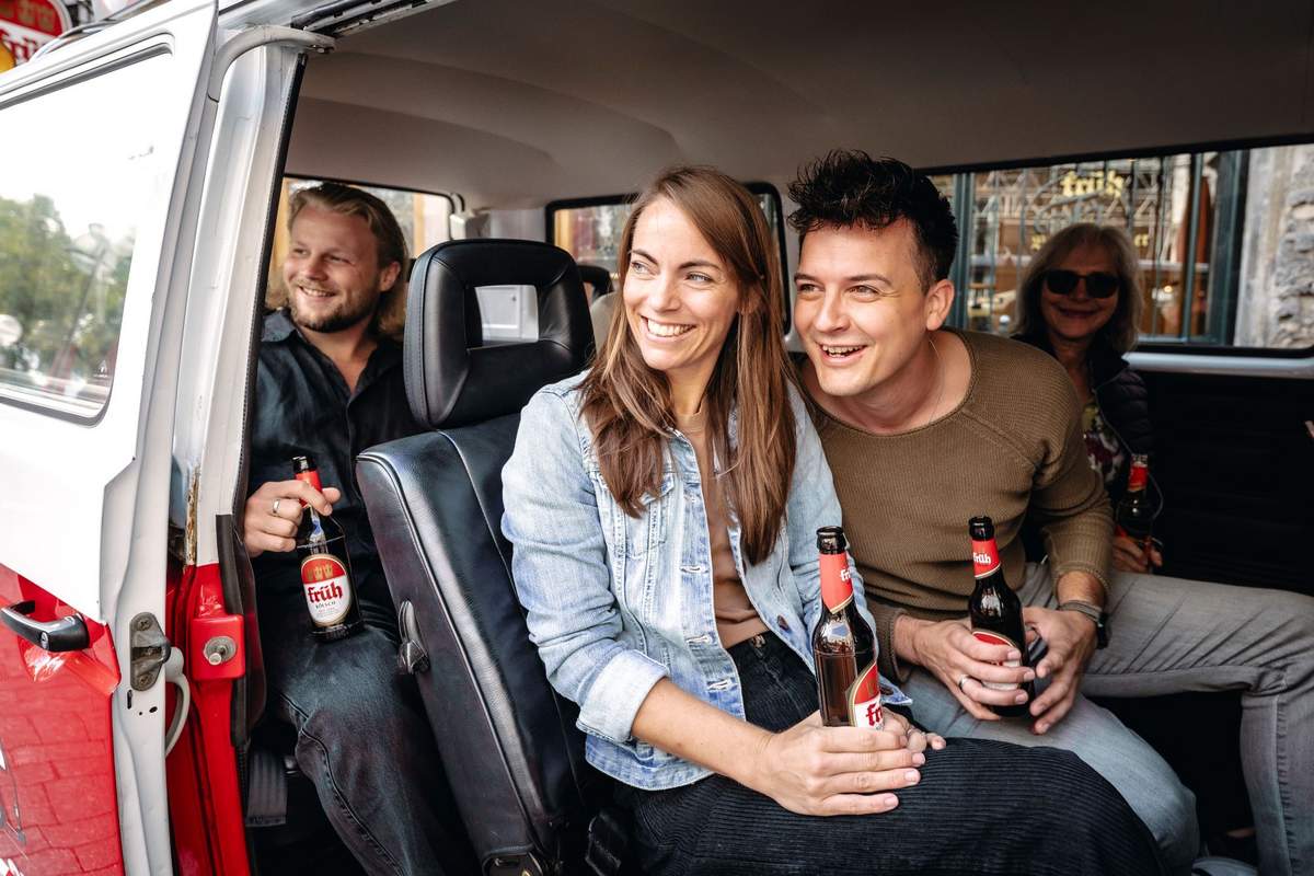 Wir holen euch direkt am Büro ab, haben kaltes Kölsch & Limo an Bord und bringen euch nach der Tour zum Restaurant – oder eurem individuellen Wunschziel.