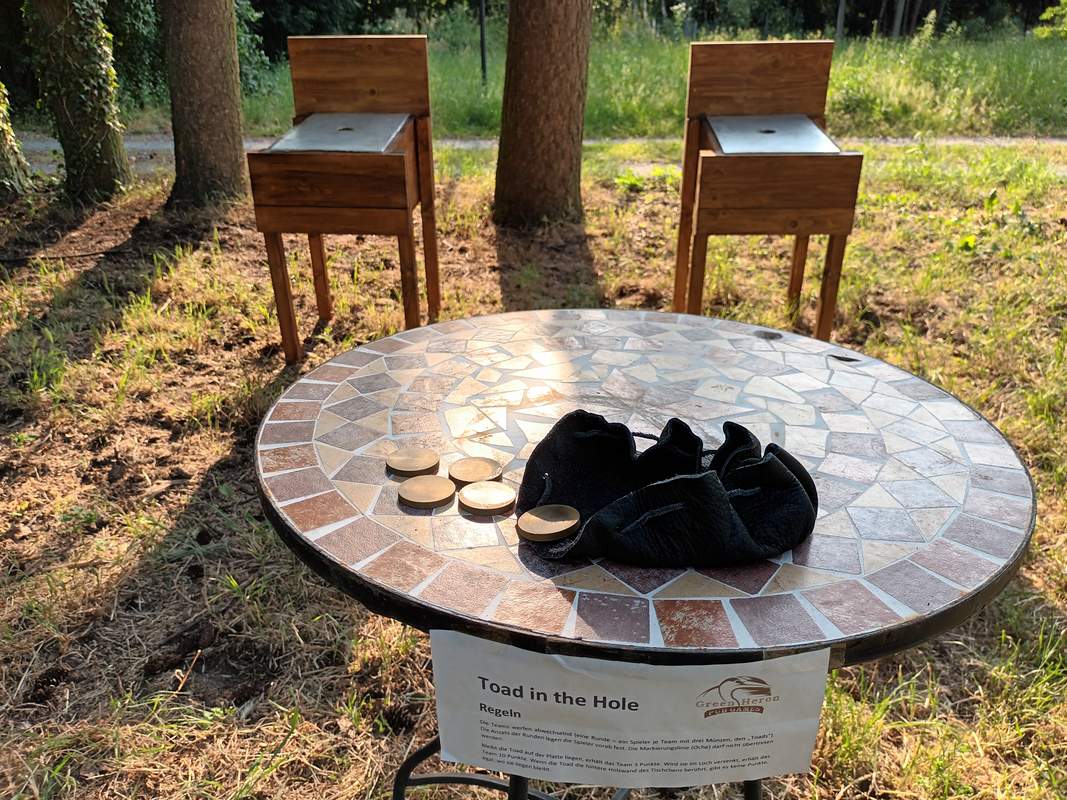 Auch „Maisloch“. Auf etwa 6 Meter Entfernung Stellen die Teams Ihre Treffsicherheit auf die Probe. Kleine Säckchen voll Mais sollen versenkt werden – doch schon diese dazu zu bringen, auf dem Brett liegen zu bleiben, ist eine Herausforderung.