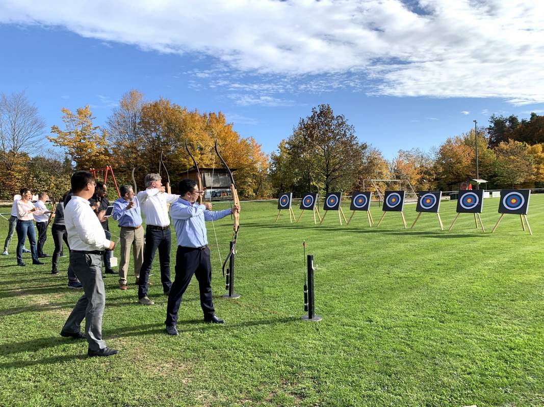 Jeder kennt es, viele haben es in ihrer Kindheit mit dem selbstgebastelten Bogen schon einmal ausprobiert: Bogenschießen. Für Jung und Alt gleichermaßen geeignet, bedarf es keiner Vorerfahrung, um schon nach kurzer Zeit die ersten richtigen Treffer zu landen. Beim Bogenschießen sind Konzentration und eine ruhige Hand gefragt. Nach einer kurzen Einweisung in das Material geht es direkt los – mit- und gegeneinander treten die Teilnehmenden bei verschiedenen kleinen Wettkämpfen an und versuchen einzeln oder in Teams die meisten Punkte zu erschießen. Unsere Team-Guides betreuen das gesamte Event, moderieren und stehen mit Rat und Tat zur Seite.