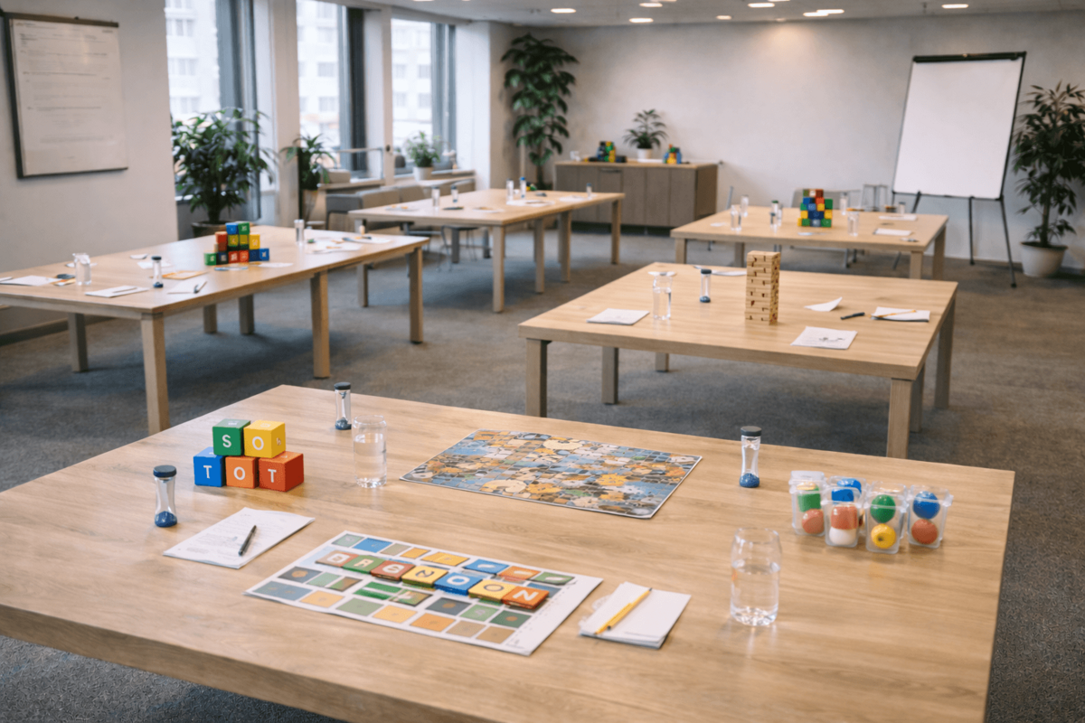 - Zero-Setup ServiceIhr stellt den Raum mit neun Tischen. Wir übernehmen den Rest: - wir bringen alle Spiele und Materialien mit - vollständiger Aufbau, Moderation und Zeitsteuerung - klar geführter Ablauf ohne organisatorischen Aufwand - ihr könnt einfach teilnehmen, statt organisieren