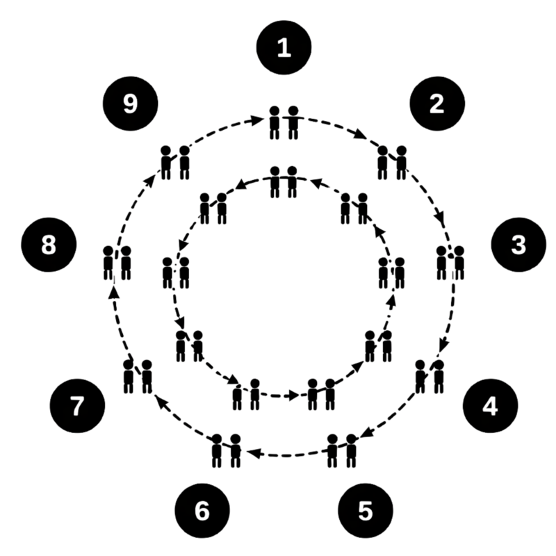 2 Stunden strukturierter Team-Impuls mit 9 rotierenden Spielen: Alle spielen, niemand wartet. Ein aktivierendes Format für Teams, die Energie, Bewegung und echtes Miteinander wollen - ohne Workshop.