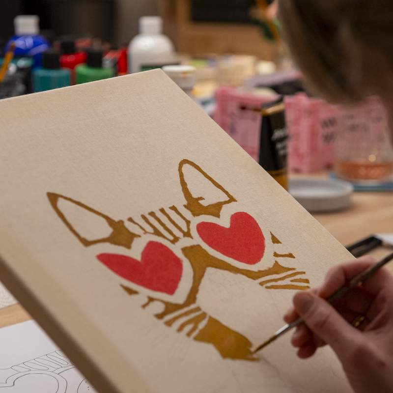 - Premium-MaterialienKomplette Materialauswahl bestehend aus Galerie-Leinwänden, hochwertiger Wolle und Profi-Acrylfarben.