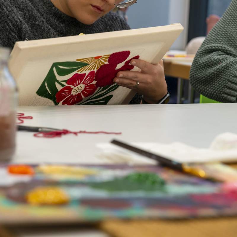 Wir setzen auf zeitlose Ästhetik und hochwertige Materialien. „Punch Needle meets Acryl“ bietet euch die perfekte Synergie aus haptischem Erleben und kreativem Ausdruck: Das rhythmische Punchen der Wolle wirkt wunderbar entschleunigend, während das Malen mit Acryl Raum für eure eigene Dynamik lässt. In entspannter Atmosphäre tauchen wir gemeinsam in einen kreativen Flow ein, feiern eure Freundschaft und erschaffen Ergebnisse, die durch Qualität und modernes Design überzeugen.