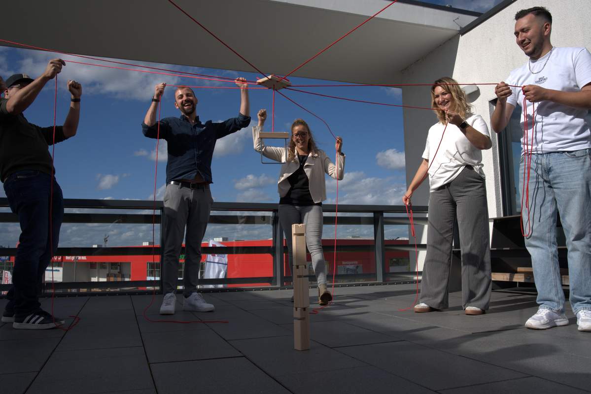 Gemeinsam im Team löst ihr verschiedene Aufgaben, bei denen ihr nur weiterkommt, wenn ihr euch abstimmt, unterstützt und zusammenarbeitet. Der Fokus liegt klar auf eurer Kommunikation und Zusammenarbeit, ganz ohne Punkte sammeln und ohne klassischen Wettbewerb.