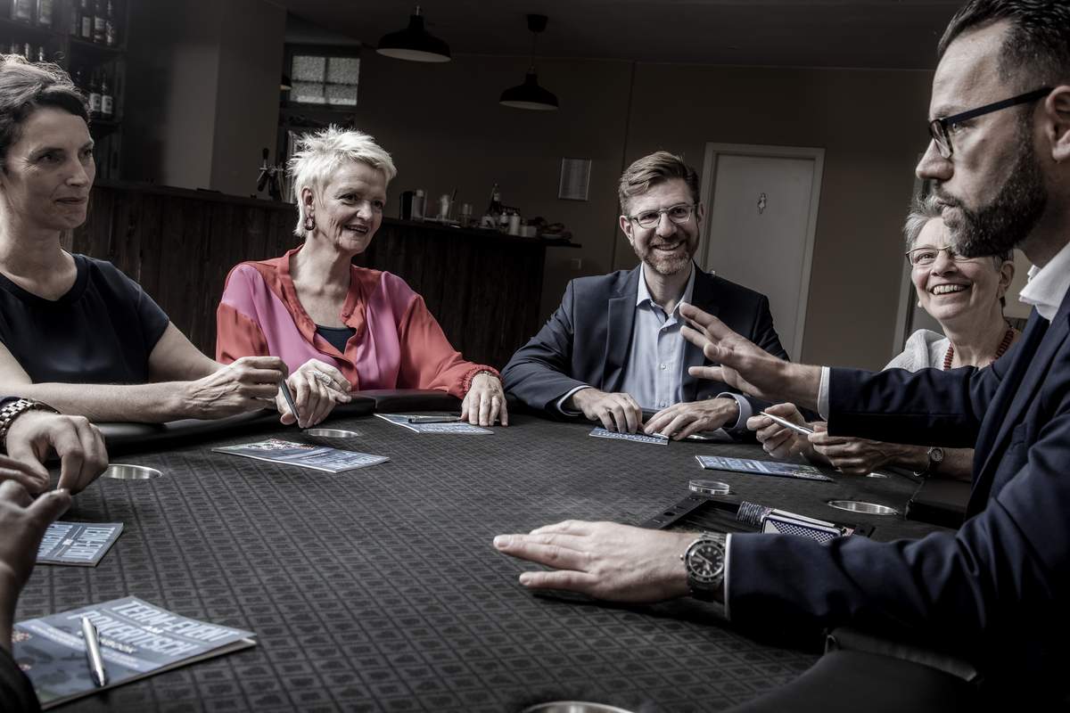 Fernab aller Klischees und James-Bond-Anekdoten existiert eine bemerkenswerte Analogie zwischen dem Pokerspiel und der Geschäftswelt. Dabei geht es weniger um Glück, Pokerfaces und große Bluffs, sondern vielmehr um Entscheidungen, Veränderungen, Emotionen und vor allem: Menschen. Diese Herangehensweise macht Poker – didaktisch richtig eingesetzt – zu einem wertvollen Serious Game für Teamtrainings – auch ohne jegliche Poker-Vorerfahrung. Ein aufregendes Spiel- und Lernfeld, um strategische und zwischenmenschliche Kompetenzen zu entwickeln und das Zusammenspiel in vier zentralen Bereichen zu verbessern.