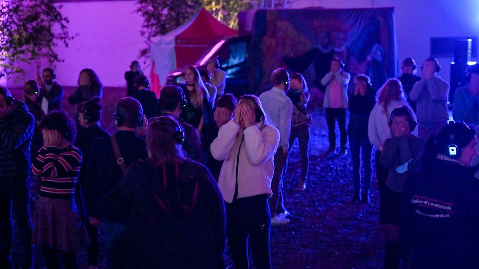Die performative Struktur wird über Funkkopfhörer organisiert. Über diese erhalten die Teilnehmenden sowohl konkrete Handlungsanweisungen als auch narrative Rahmungen, welche Bewegungen, Gesten und Interaktionen innerhalb der Gruppe strukturieren. Es entstehen überlagerte Erfahrungsebenen, die individuelle Wahrnehmung mit kollektiver Handlung verknüpfen. Jede teilnehmende Person fungiert damit als aktiver Mitproduzentin der Performance. Zudem kann durch das Eintauchen in die Geschichte der Erfahrungshorizont erweitert werden, indem kognitive und körperliche Erkenntnisprozesse ineinandergreifen.