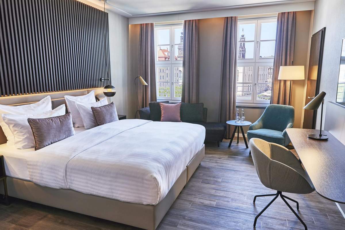 Bei einem Aufenthalt ab der Premium-Kategorie stehen Bademantel und Slipper, eine Nespressomaschine und eine kostenfreie Minibar zur Verfügung; ab der Grand-Deluxe-Kategorie genießen Sie einen einmaligen Blick über den Neumarkt in Richtung Frauenkirche.