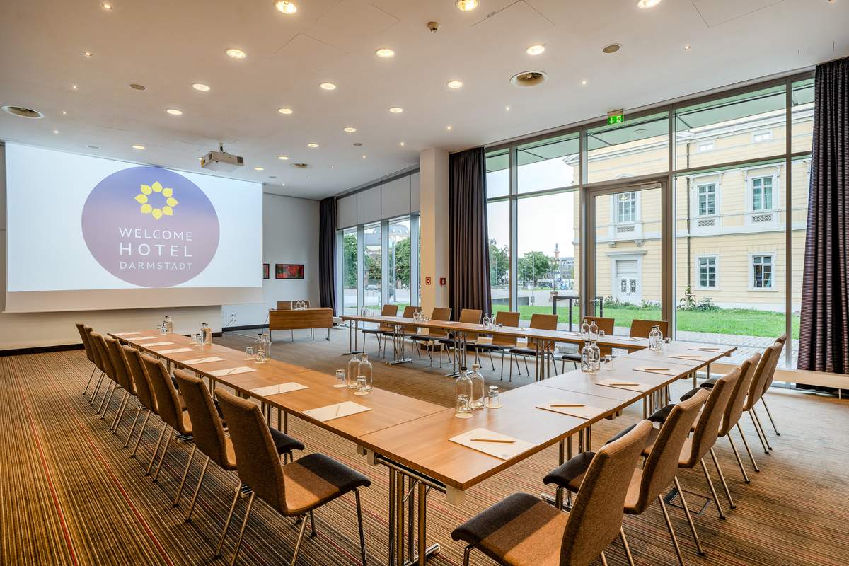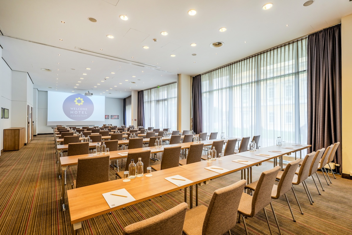 Mit seiner hervorragenden Innenstadtlage und der direkten Anbindung an das Wissenschafts- und Kongresszentrum Darmstadtium ist das WELCOME HOTEL DARMSTADT nicht nur ein vielgebuchtes Tagungshotel, es bietet seinen Besuchern auch die Annehmlichkeit kurzer Wege. Der Clou: Das Hotel und das Kongresszentrum sind durch einen Fußgängertunnel miteinander verbunden. Buchen Sie einfach einen der fünf hoteleigenen Tagungsräume oder einen von acht Konferenzräumen im Darmstadtium. Dank neuester technischer Ausstattung, zuverlässiger Organisation und freundlichem Service wird Ihre Veranstaltung bei uns mit Sicherheit zum Erfolg.