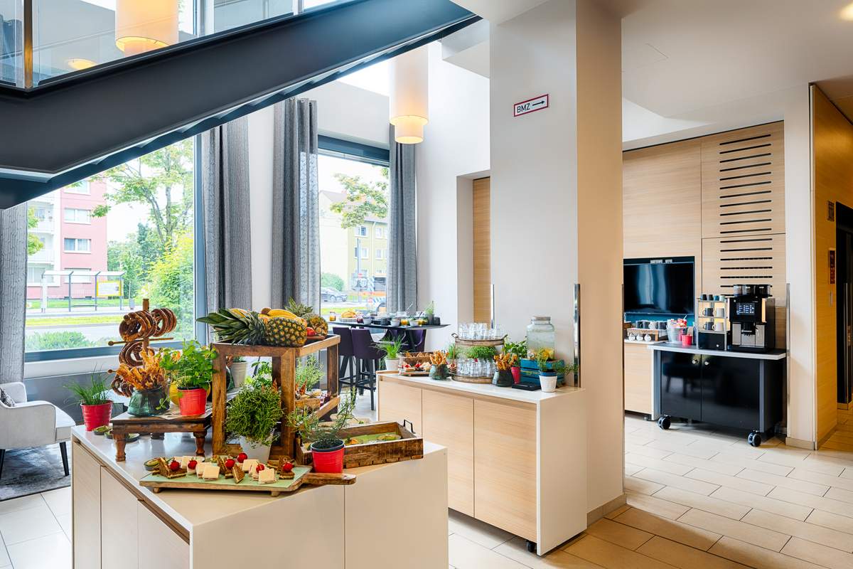 Sehr viel Licht empfängt den Besucher des „View“. Vom stilvollen Tagesrestaurant aus haben Sie durch die Panoramafenster den Blick ins Grüne und das Rebstockgelände. Morgens erwartet Sie hier das reichhaltige Welcome-the-day-Frühstücksbuffet und mittags wird für die Meeting- und Businessgäste ein 3-Gang Menü oder Businesslunch serviert, ausgewählt vom Küchenchef und saisonal abgestimmt.