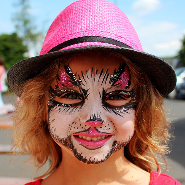 Lassen Sie Kinderaugen leuchten! Mit Pinsel und Farbe verwandeln wir kleine Gäste in furchtlose Tiger, zauberhafte Schmetterlinge oder funkelnde Fabelwesen. Unser professionelles Kunst- & Kinderschminken ist das Highlight auf jedem Event. Als besonderes Extra bringen wir Glitzertattoos mit, die nicht nur wasserfest sind, sondern als funkelndes Souvenir noch tagelang an Ihre Veranstaltung erinnern. Ein bunter Spaß, der jedes Fest in eine Fantasiewelt verwandelt! Auf Wunsch mit einer Mal- & Bastelecke oder einer Hüpfburg.