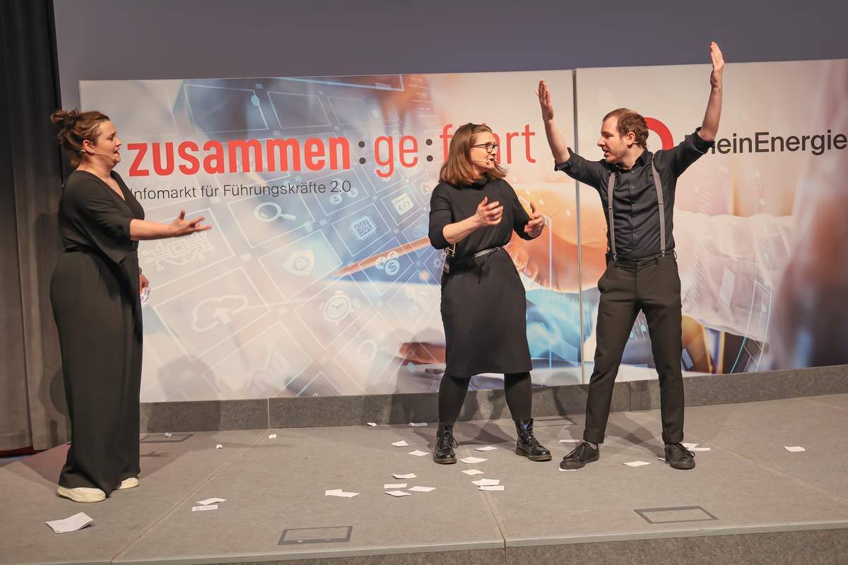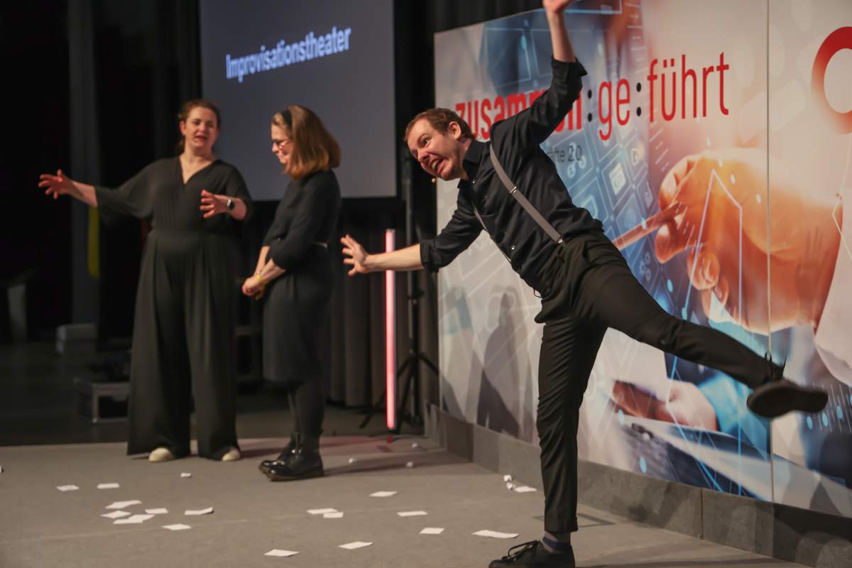 Damit visualisieren, öffnen und verändern wir eure Unternehmensprozesse. Im Zentrum unseres Business-Theaters stehen Humor, Leichtigkeit und das gemeinsame Lachen. Das Publikum ist jeden Moment aufmerksam, da es immer wieder aktiv eingebunden wird. Wir visualisieren, öffnen und verändern mit dem Improvisationstheater eure Unternehmensprozesse.